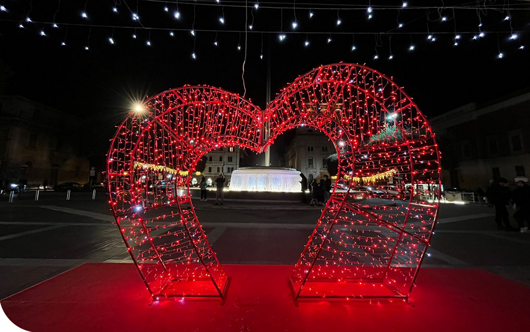 Le nostre speciali luminarie San Valentino sono progettate per trasformare momenti ordinari in esperienze straordinarie, ponendo le basi per indimenticabili celebrazioni di amore, romanticismo ed emozioni.